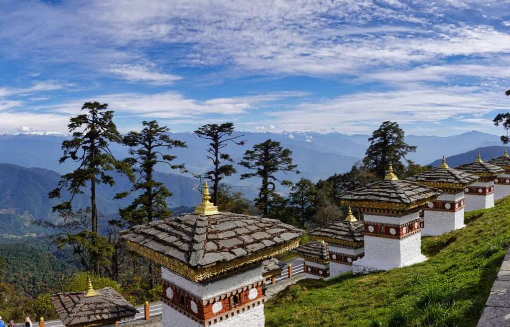 Μετά το πρωινό, αφήνουμε πίσω μας την Thimphu και ανηφορίζουμε προς το Dochu La Pass (3.088 μ.), μια από τις πιο όμορφες ορεινές διαδρομές του Μπουτάν. Στην κορυφή, ανάμεσα σε δάση ροδοδένδρων, ξεπροβάλλουν οι 108 Druk Wangyal Chortens, χτισμένοι στη μνήμη των πεσόντων στρατιωτών. Αν ο καιρός είναι καθαρός, οι χιονισμένες κορυφές των Ιμαλαΐων ανοίγονται μπροστά μας σε ένα συγκλονιστικό πανόραμα. Σταματάμε σε ένα μικρό οικογενειακό tea house, δοκιμάζουμε τοπικό τσάι με βούτυρο και μιλάμε με τους ιδιοκτήτες για τη ζωή στις ορεινές κοινότητες.