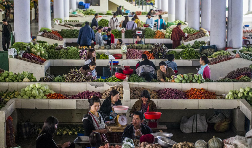 Αργότερα, βόλτα στο Ka Ja Throm Market, μια από τις πιο «καθαρές» και οργανωμένες υπαίθριες αγορές του Μπουτάν. Δημιουργήθηκε με στόχο να στηρίξει νέους παραγωγούς, καλλιτέχνες και μικρούς επιχειρηματίες, και εποπτεύεται από τις τοπικές αρχές. Η ατμόσφαιρα είναι χαλαρή, φιλική, και τα προϊόντα έρχονται κυρίως από τα χωριά της περιοχής.