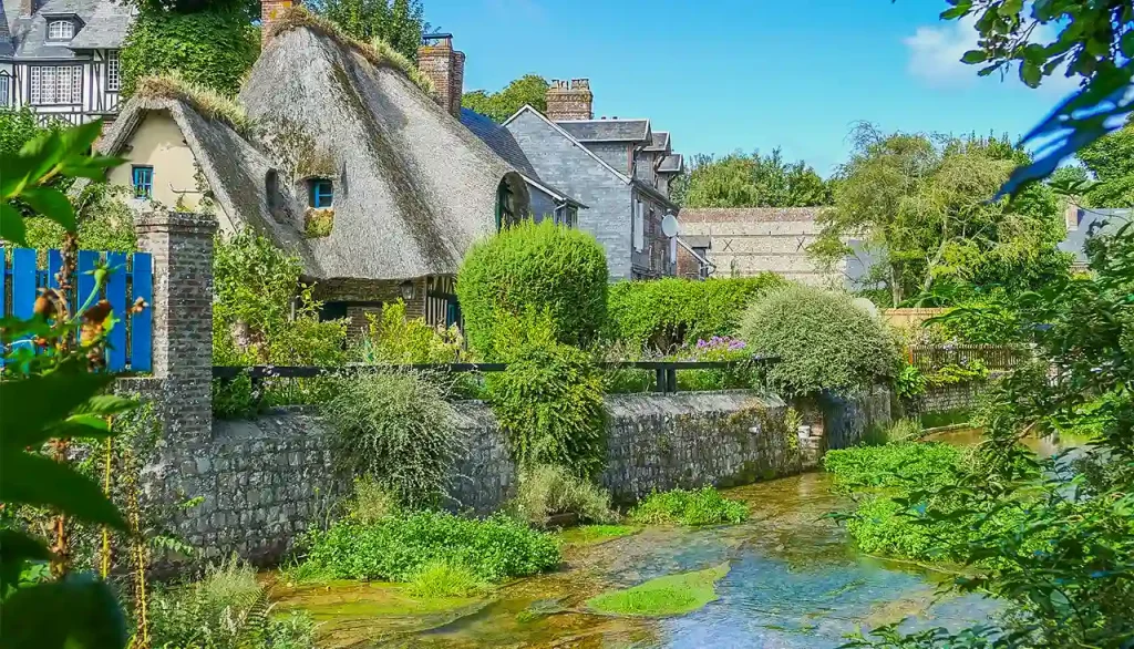 Το μεσημέρι φτάνουμε στο Veules-les-Roses, ένα χωριό-κόσμημα που συμπυκνώνει, σε πολύ μικρή κλίμακα, όσα κάνουν τη Νορμανδία ξεχωριστή: τοπίο, ιστορία, καθημερινή ζωή και αισθητική. Εδώ κυλά ο Veules, o μικρότερος ποταμός της Γαλλίας, ανάμεσα σε παλιούς μύλους, κήπους και τριανταφυλλιές, ενώ οι επαύλεις της Belle Époque μαρτυρούν τη γοητεία που ασκούσε το χωριό στους παραθεριστές του 19ου αιώνα. Κάνουμε μια σύντομη βόλτα και απολαμβάνουμε ένα ελαφρύ, γρήγορο γεύμα, χωρίς να βαραίνουμε τον ρυθμό της ημέρας.